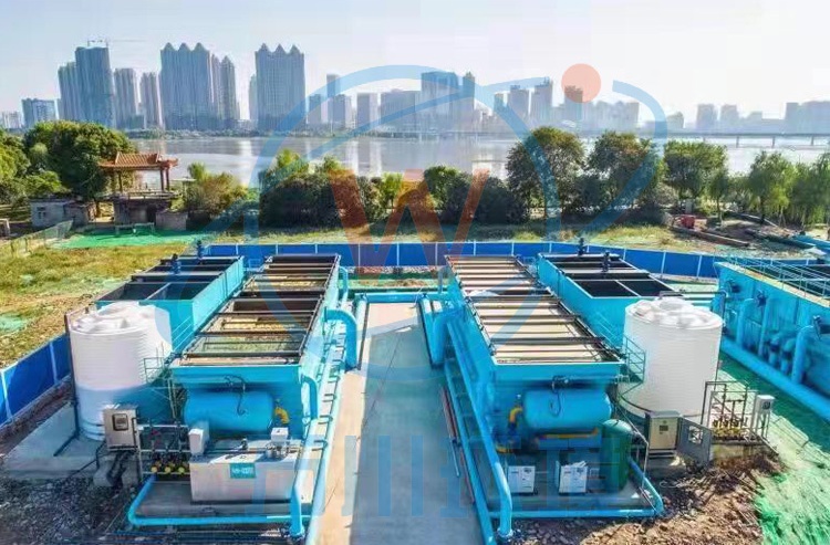 WF型組合氣浮設備是由氣浮池體、溶氣系統、溶氣水回流管路、溶氣水釋放裝置、刮渣機和電控系統組成。